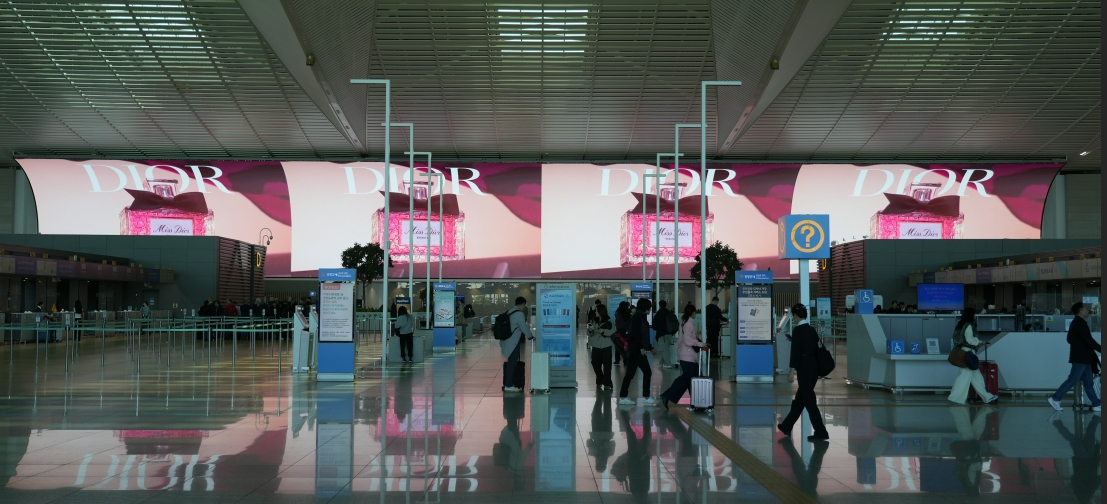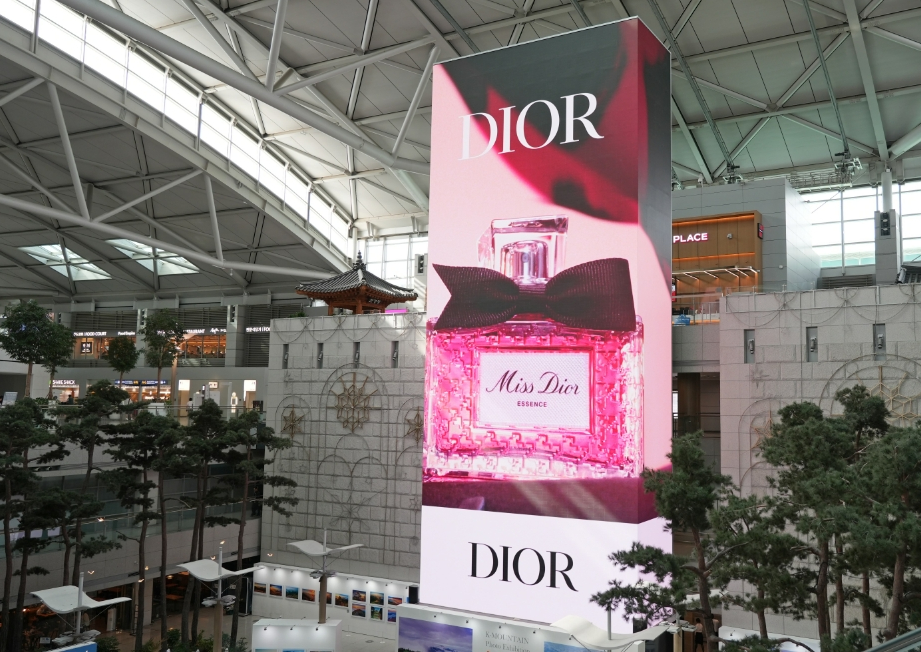 프랑스 명품 브랜드 디올(Dior)이 인천국제공항에서 대규모 디지털 옥외광고(DOOH) 캠페인을 펼치며 공항을 거대한 런웨이로 탈바꿈시켰다. 이번 캠페인은 공항 내 핵심 랜드마크 미디어를 동시에 활용해 예술성과 기술, 럭셔리 브랜드의 감성을 결합한 대표적인 사례로 평가받고 있다.